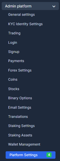 2. Go the the "Admin Platform" and chose "Platform Settings".