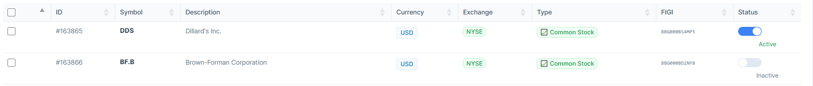 3. Toggle the status of the desired stock "on" or "off" to make it visible or invisible in new records.