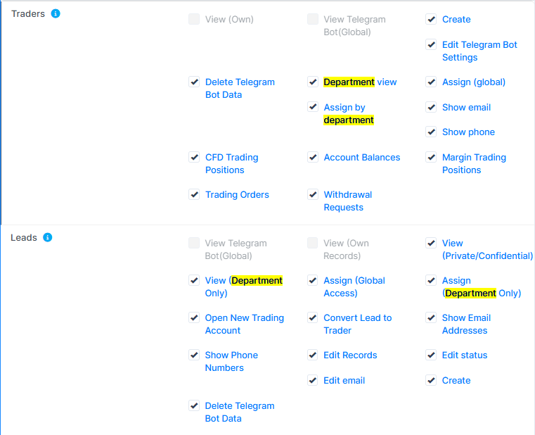 4. Go to "Permissions". Make sure the agent receives "Department View" and "Assign by Department" permissions.