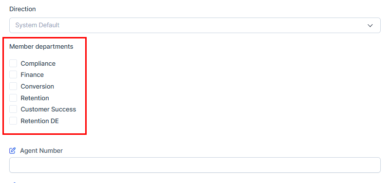 6. Scroll down to view which departments the staff member. Make sure the agent is excluded out of the list.