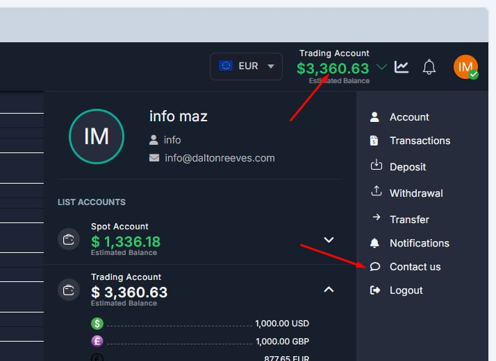 2. Go to the platform and press on the account type. Choose "Contact Us".