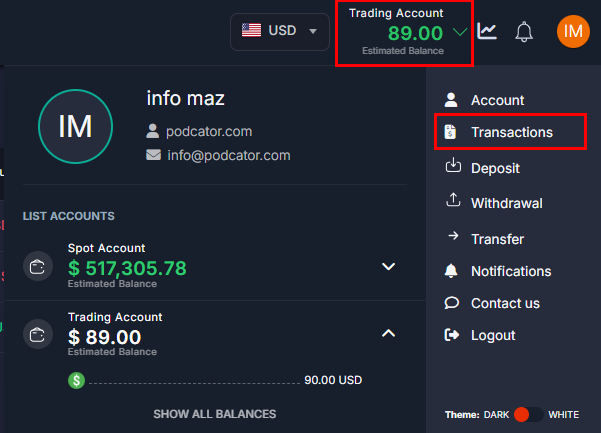 1. Go to "Manager Platform" on the crm in the menu on the left side of the page to log in to the user's platorm.