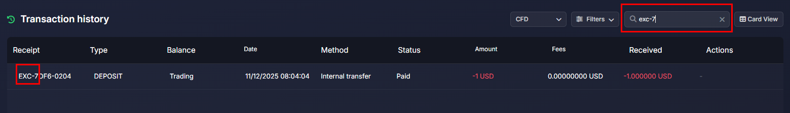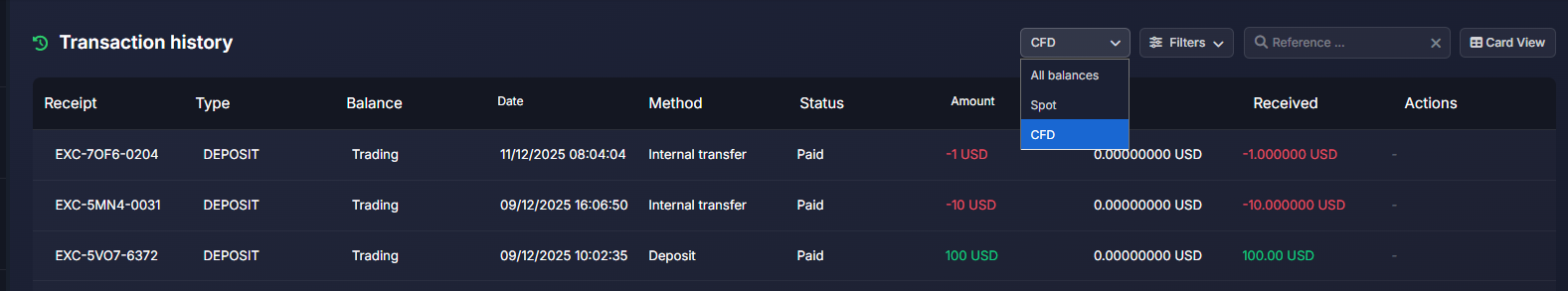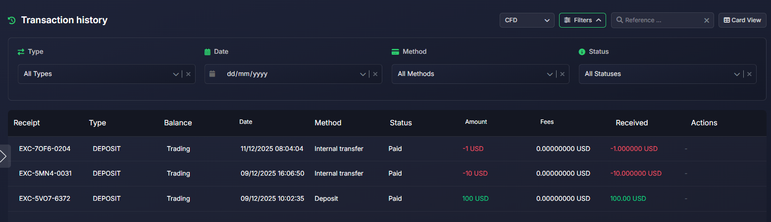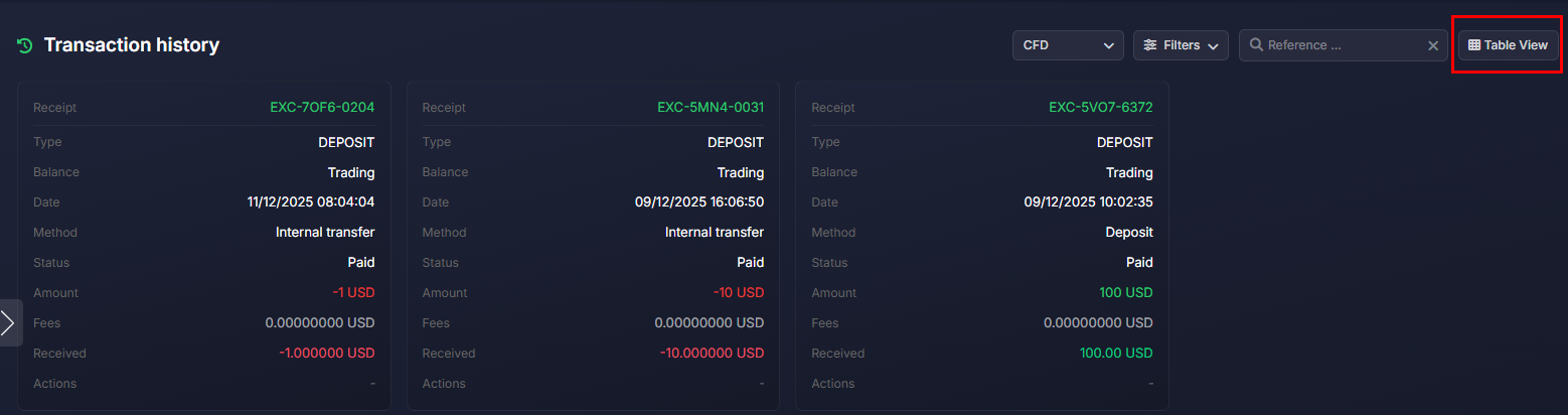6. You can as well choose a more convenient view by pressing on the "Card/Table View".