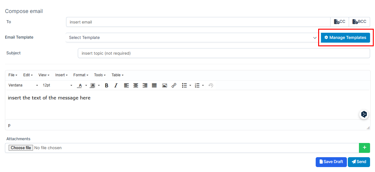 1. Press on "Manage Templates".