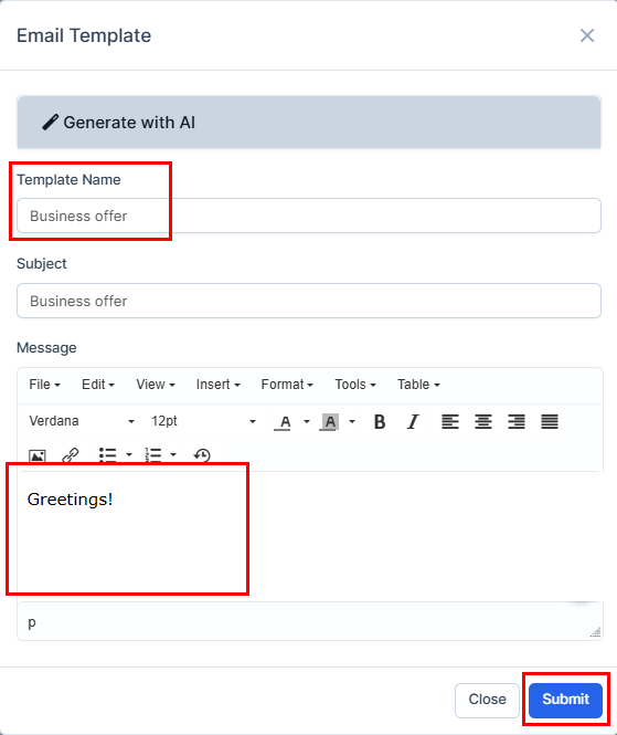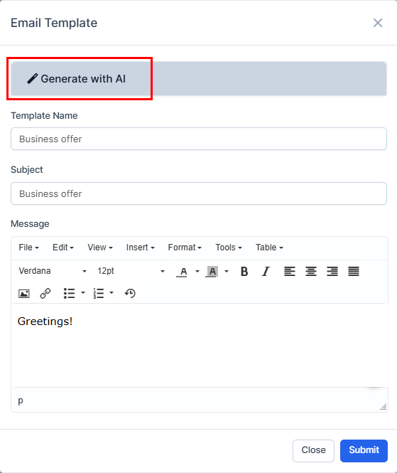 1. Press on "Generate with AI".
