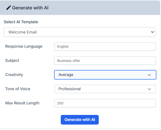 3. Set the settings according to your request and press "Generate with AI".