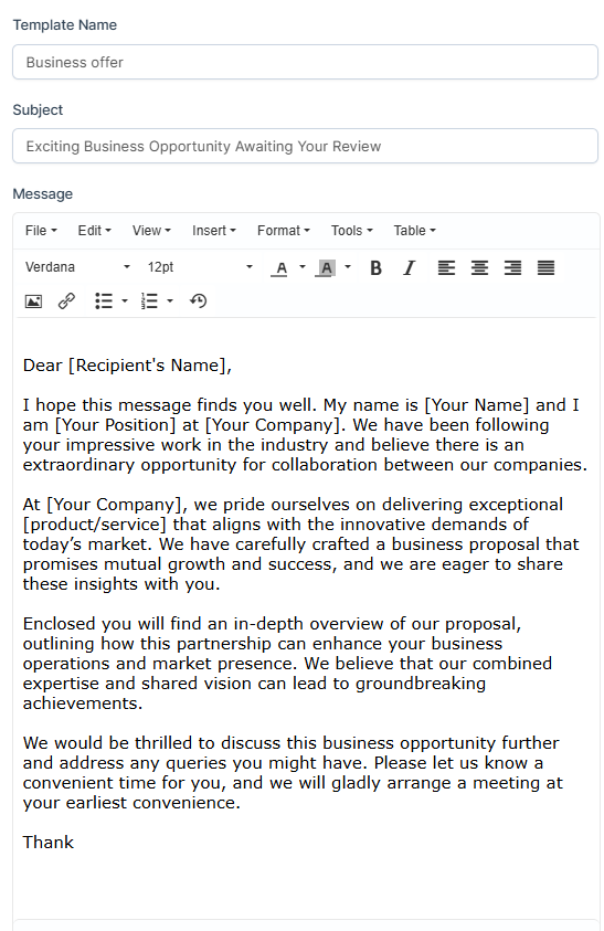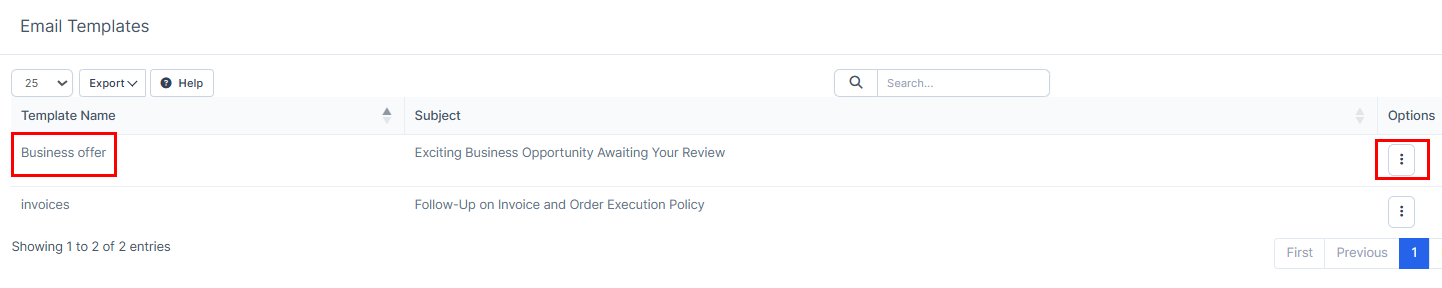 6. You will be able to view, edit or delete or in the list of templates.
