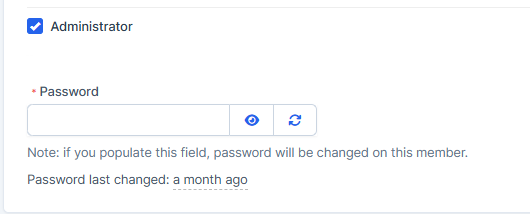 4. Inside "New Staff Member" fill in the form with information to your liking and be sure to fill the mandatory fields marked with a red asterisk *. Scroll down to choose "Administrator".