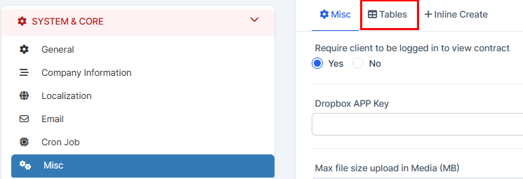 3. Choose "Misc" and get to "Tables".