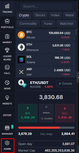 1. Go to "Manager Platform" on the crm in the menu on the left side of the page to log in to the user's platorm.