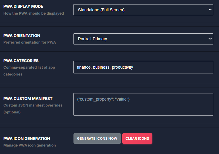 3. Press on the "General Settings" tab, find "PWA Settings" and enable it.