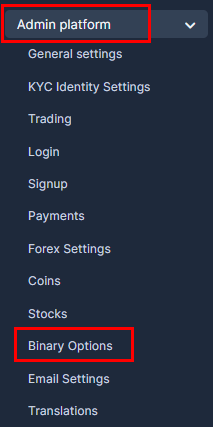 2. Go to "Admin Platform" and choose "Binary Options" tab.
