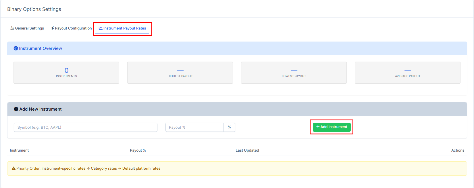 5. Go to "Instrument Payout Rates".