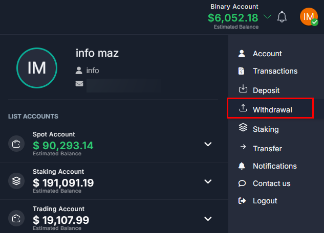 1. To withdraw funds from Binary Account press on your account type.