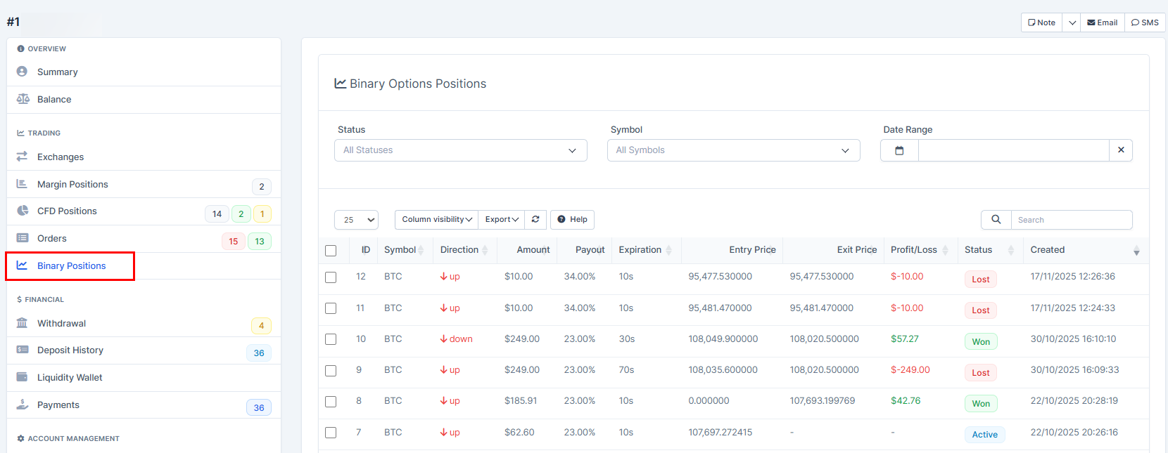 1. Go to "Manager Platfrom" and choose "Binary Positions".