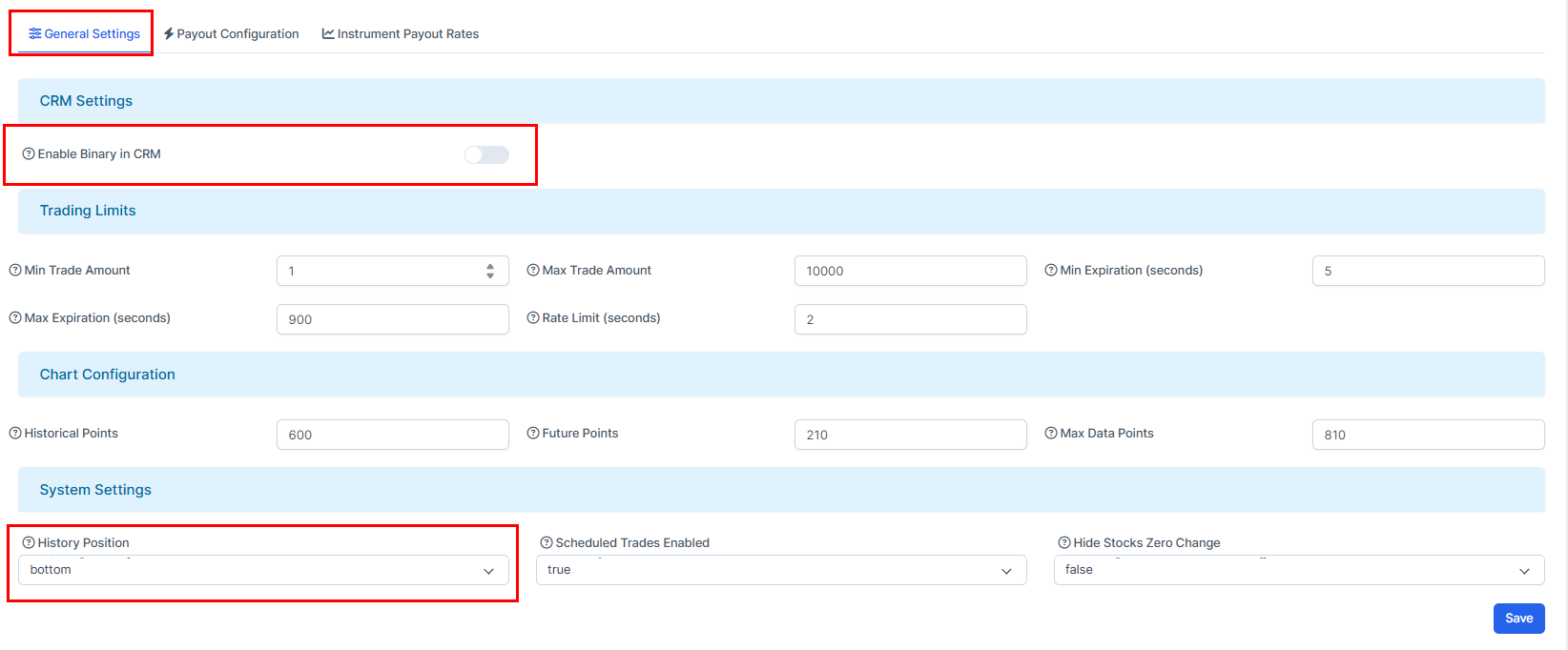 3. Go to "General Settings" and choose "Enable Binary in CRM". Other settings available are also perferctly moderatable.