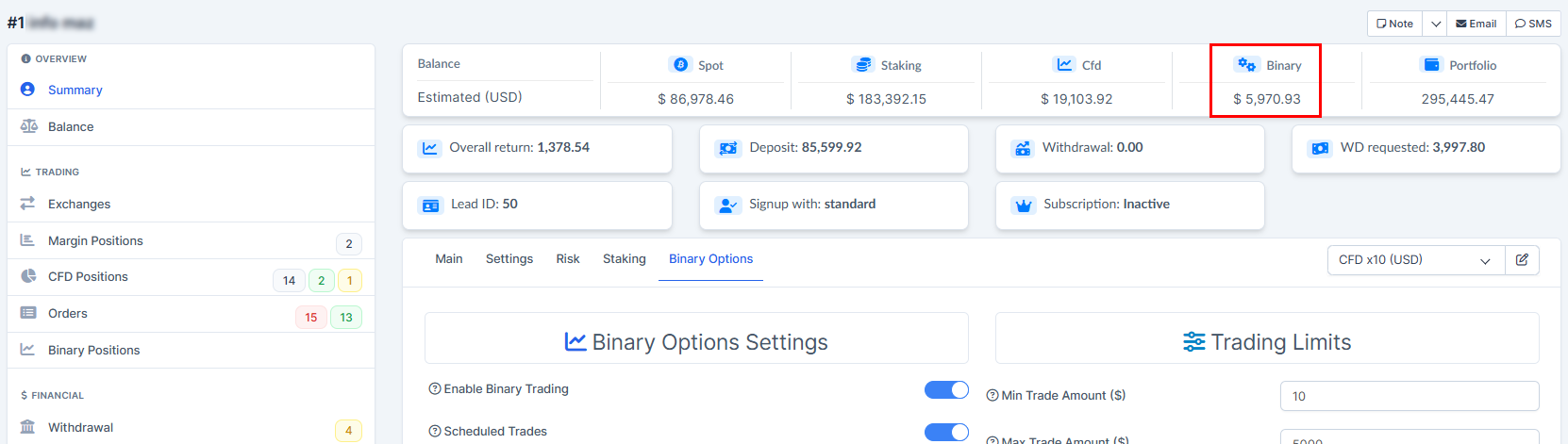 Once the option is enabled, you will get the access to "Binary Options" on the trader's page. Make sure "Enable Binary Trading" is on for the client on the trader's profile.