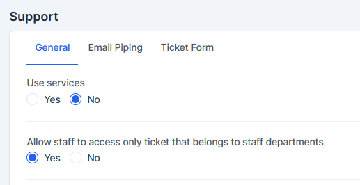 4. Go to "General" and choose "Allow staff to access only ticket that belongs to staff departments". Disable this setting.