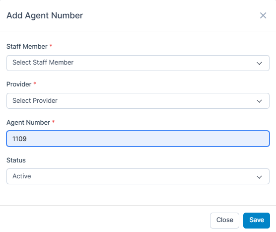 2. Fill in the required fields marked with * and activate the status of the agetn's number. Press on "Save" to save the permissions.
