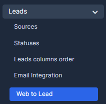 2. Navigate to the main menu and click on "Leads". In the Leads submenu, select "Web to Lead" or "Forms"