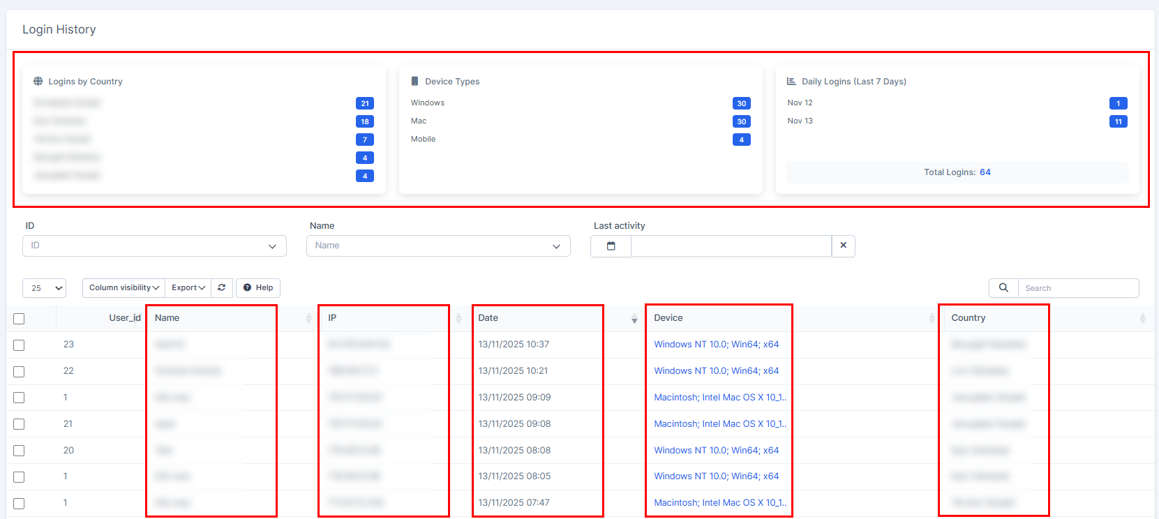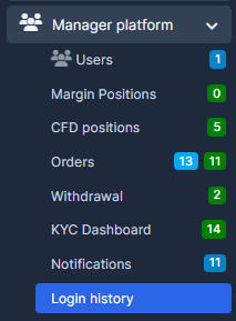 1. Go to "Manager Platform" in the left menu and choose "Login History".